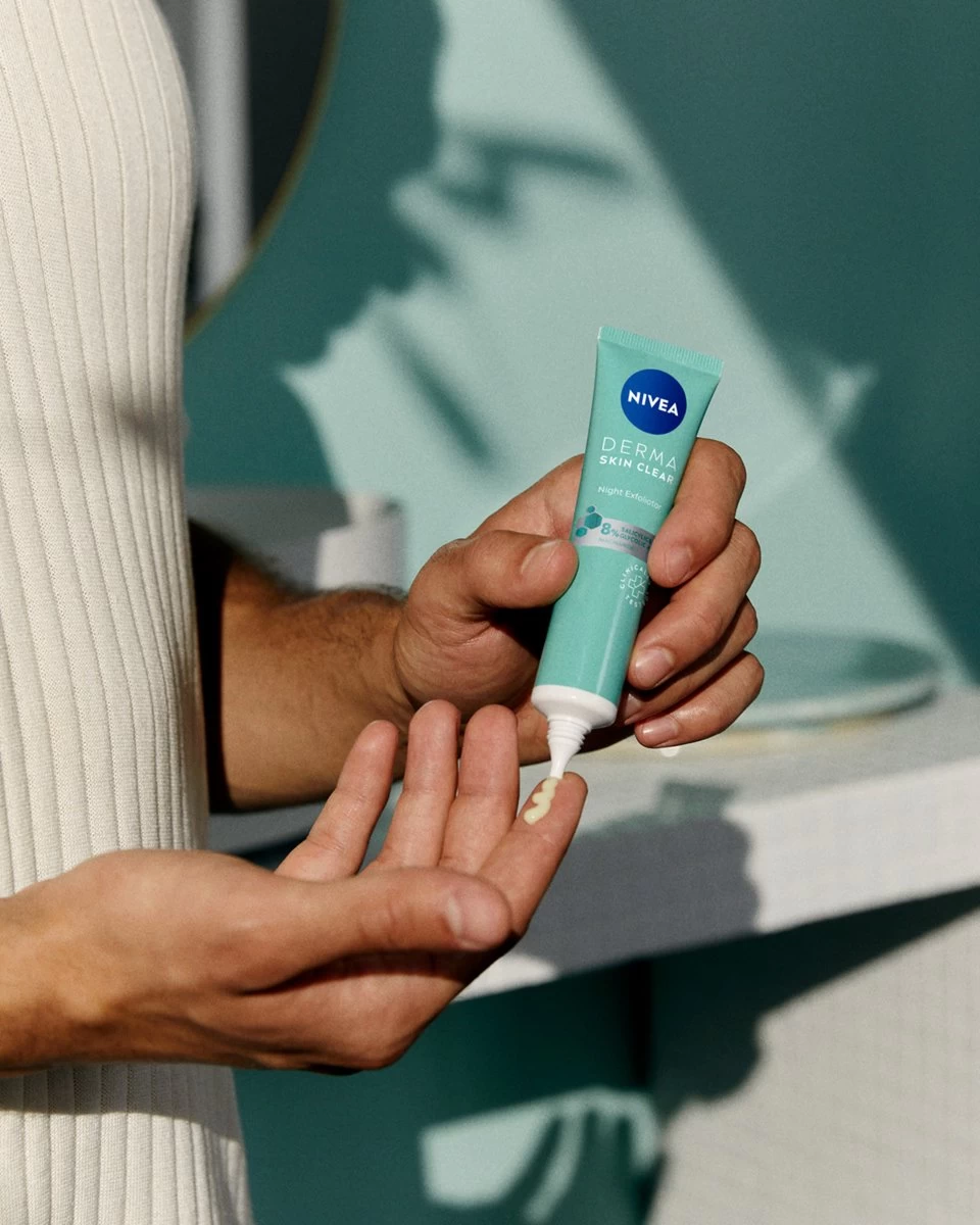 NIVEA DERMA Skin Clear Dagelijkse Verzorgende Nacht Exfoliant 40ml ondersteunt het natuurlijke vernieuwingsproces van de huid en bevordert de verwijdering van dode huidcellen. Onze Dagelijkse Verzorgende Nacht Exfoliant bevat een zeer geconcentreerde formule met 8% AHA/BHA (Glycol- & Salicylzuur) in combinatie met Niacinamide. De NIVEA DERMA Skin Clear Dagelijkse Verzorgende Nacht Exfoliant zorgt voor een zichtbaar gavere huid in 7 dagen, vermindert onzuiverheden en voorkomt het ontstaan van nieuwe onzuiverheden. De Vegan formule** is klinisch getest*** en niet-comedogeen.