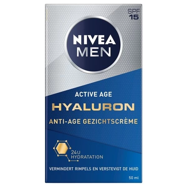 Om je huid er op zijn best uit te laten zien gebruik je Nivea Men Hyaluron Moisturizing Crème. De crème vermindert rimpels zichtbaar en verstevigt je huid.