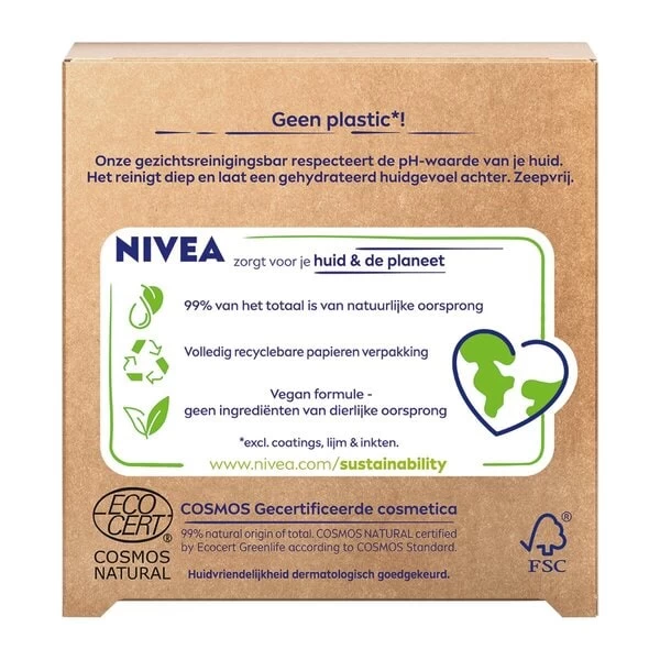 De huidvriendelijkheid van de Nivea Naturally Clean Verfrissende Reinigingsbar is dermatologisch goedgekeurd. De bar is zeepvrij.