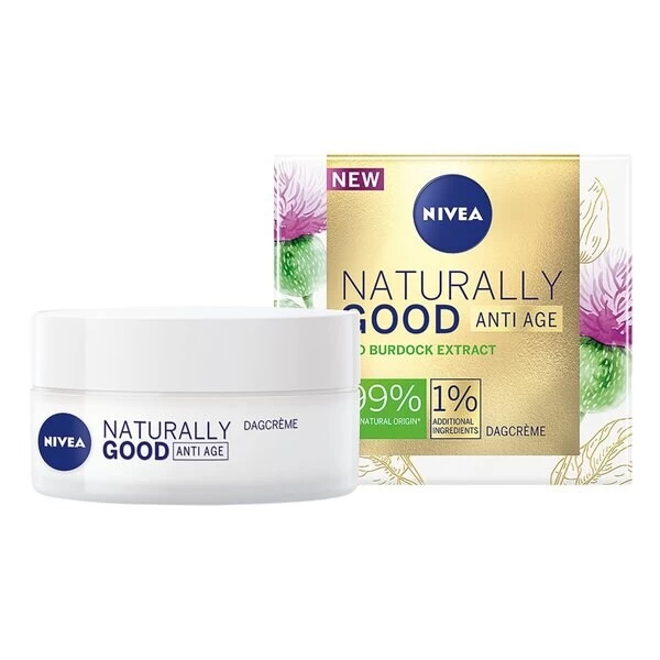 Nivea Naturally Good Anti-Age Dagcrème helpt je huid zichzelf te regenereren. De formule met Bio Burdock fruitextract en arganolie vermindert zichtbaar lijntjes en rimpels in slechts twee weken.