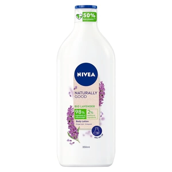 98% van de ingrediënten van Nivea Naturally Good Bio Lavender Bodylotion is geselecteerd uit de natuur. De fles is gemaakt van 50% minder plastic om in te knijpen en op te rollen tot de laatste druppel!