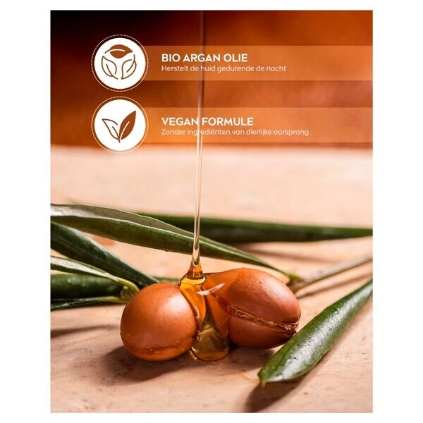 De regenererende formule met biologische arganolie laat je huid de volgende ochtend soepel aanvoelen. De nachtcrème ondersteunt het herstellend vermogen van je huid tijdens de nacht voor een uitgerust ogende huid in de ochtend.