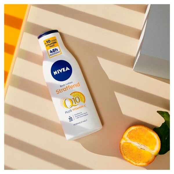 In de loop der jaren vermindert het huideigen co-enzym Q10 waardoor je huid zijn stevigheid en elasticiteit verliest. De rijke Nivea Q10 Plus Verstevigende Bodylotion voedt je huid intensief en maakt je huid weer glad en stevig.