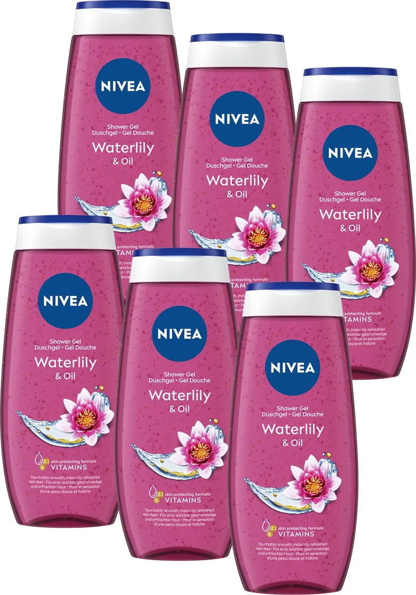NIVEA Waterlily & Oil Douchegel NIVEA Waterlily & Oil Douchegel 250ml verzorgt de huid op natuurlijke wijze. NIVEA’s douchegel voor iedere dag maakt van je douchebeurt een verfrissende ervaring. De kalmerende waterleliegeur biedt de huid een gehydrateerd en gezond huidgevoel. Deze douchegel is pH-huidneutraal, heeft een 99% biologisch afbreekbare formule, is 100% klimaatneutraal, en wordt geleverd in een fles die voor 96% uit gerecycled materiaal bestaat*.